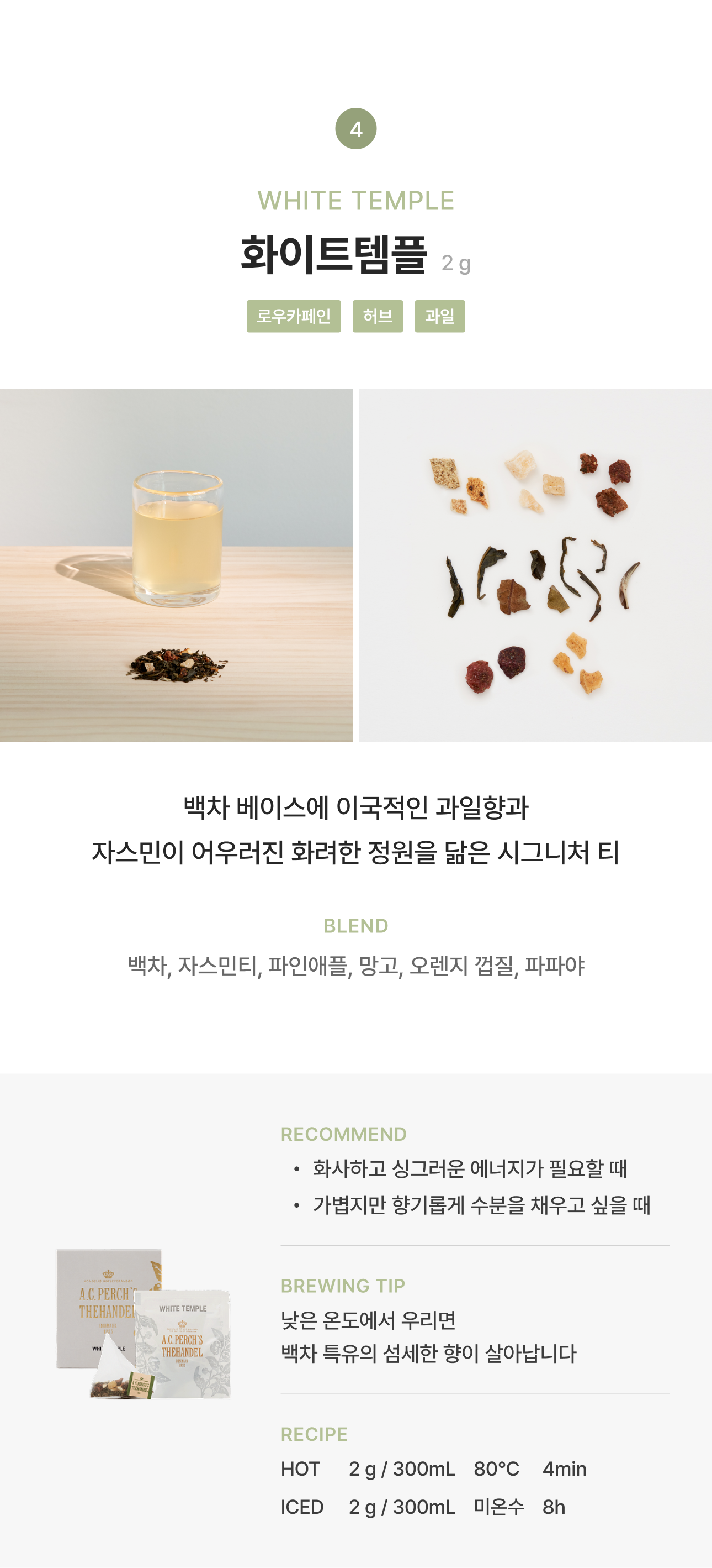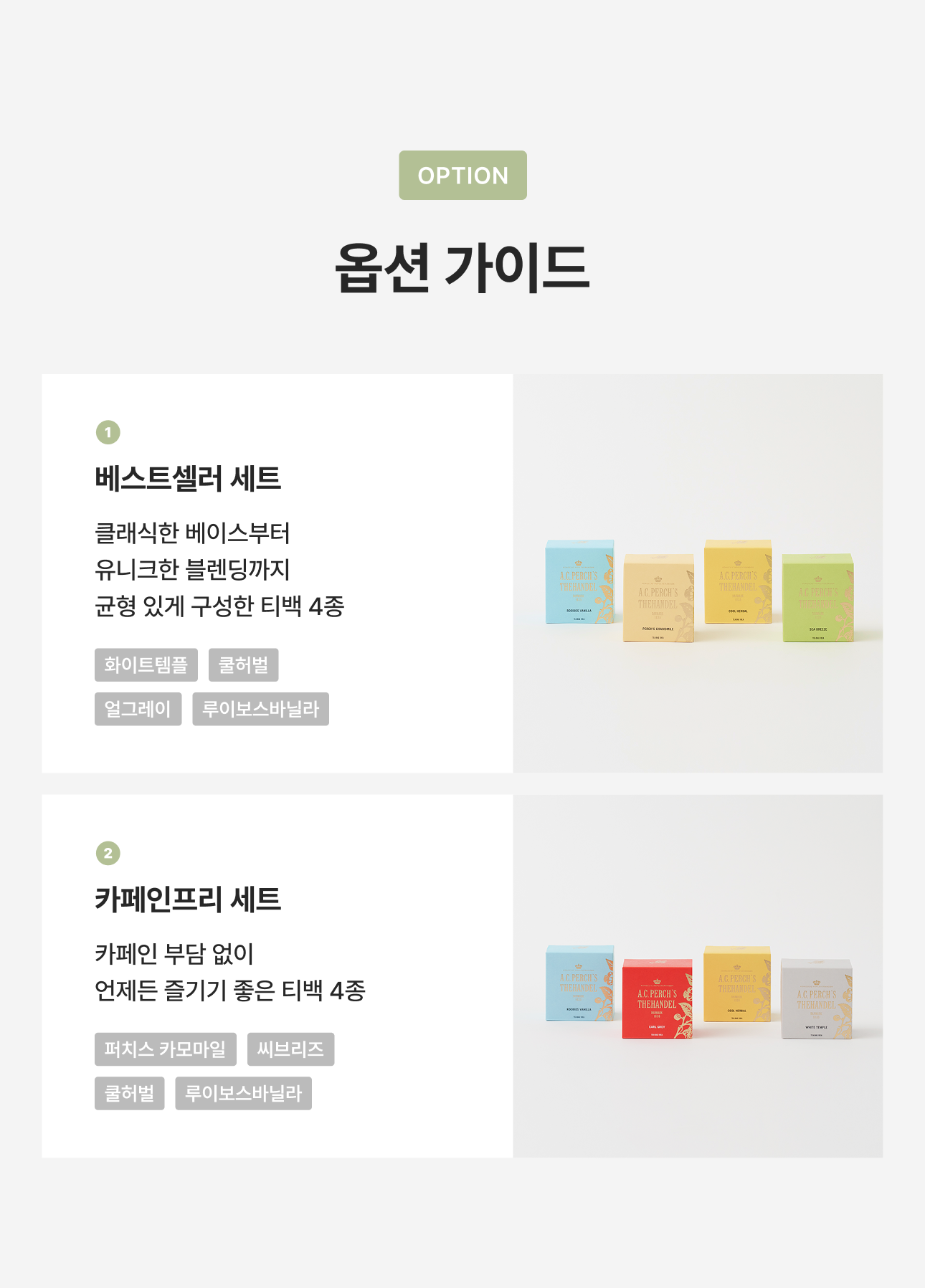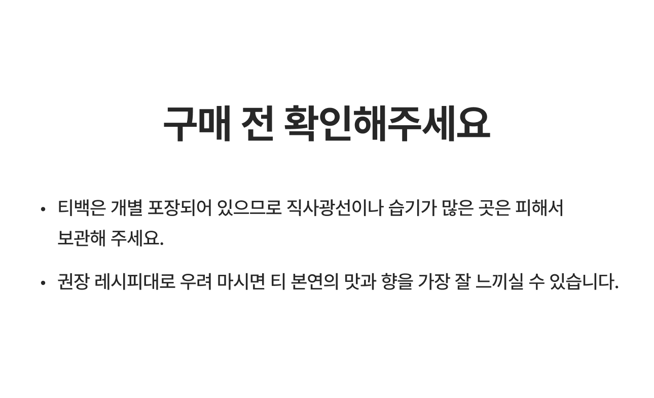 - 베스트셀러: 화이트템플, 쿨허벌, 얼그레이, 루이보스바닐라