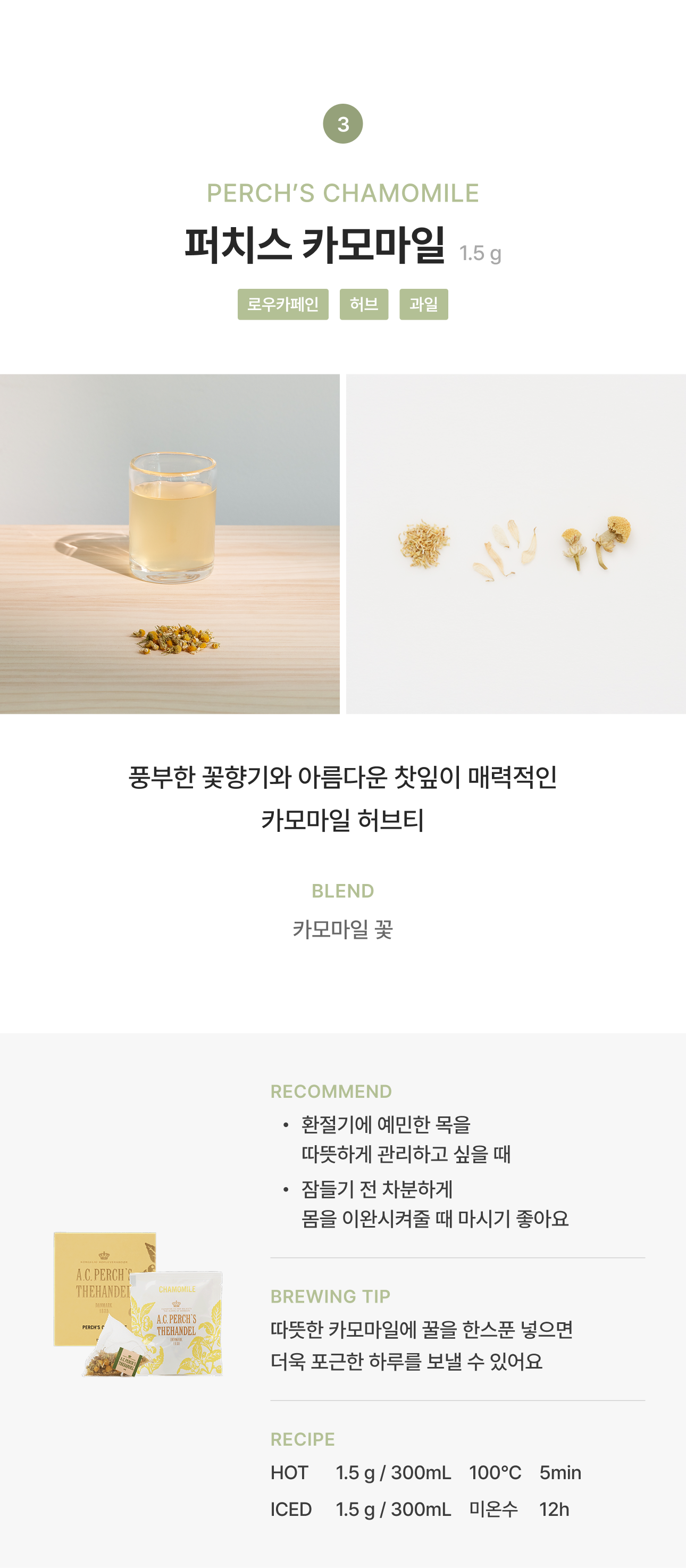 - 카페인프리: 퍼치스 카모마일, 씨브리즈, 쿨허벌, 루이보스바닐라