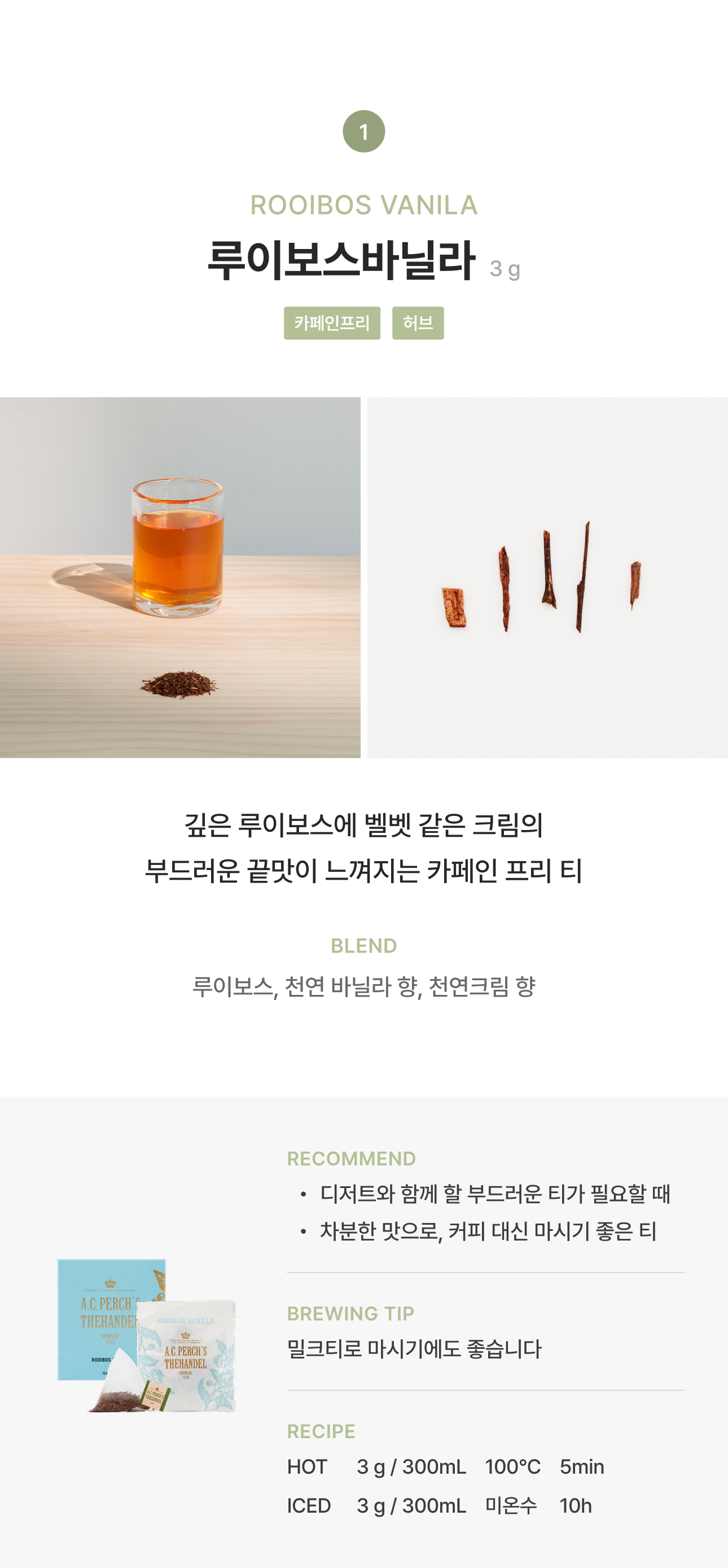 2. 루이보스바닐라 : 루이보스 97% (남아프리카공화국), 바닐라향 2%(독일), 크림향 1%(독일)