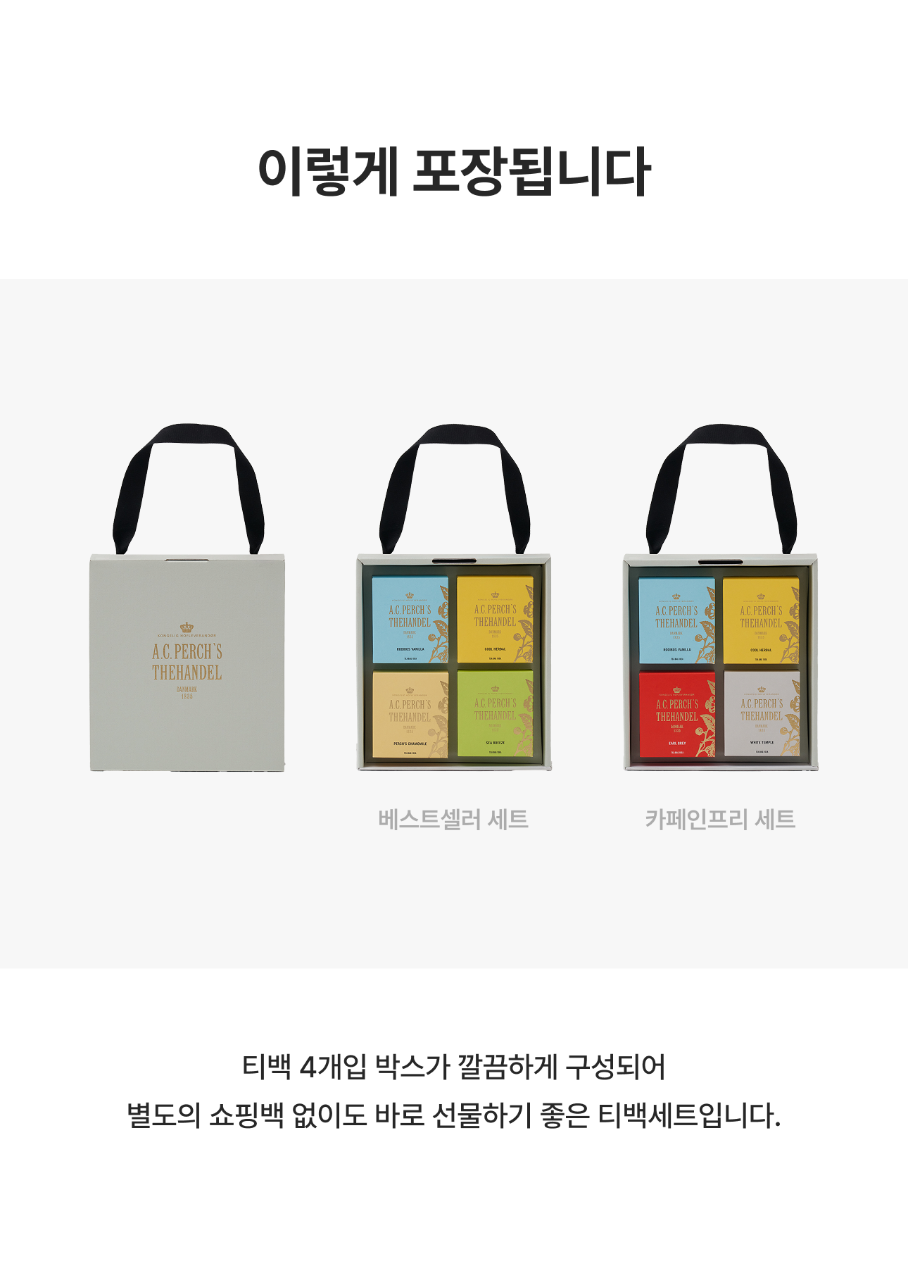 다양하게 맛볼 수 있는 티백 4종이 포함된 티백 세트입니다.