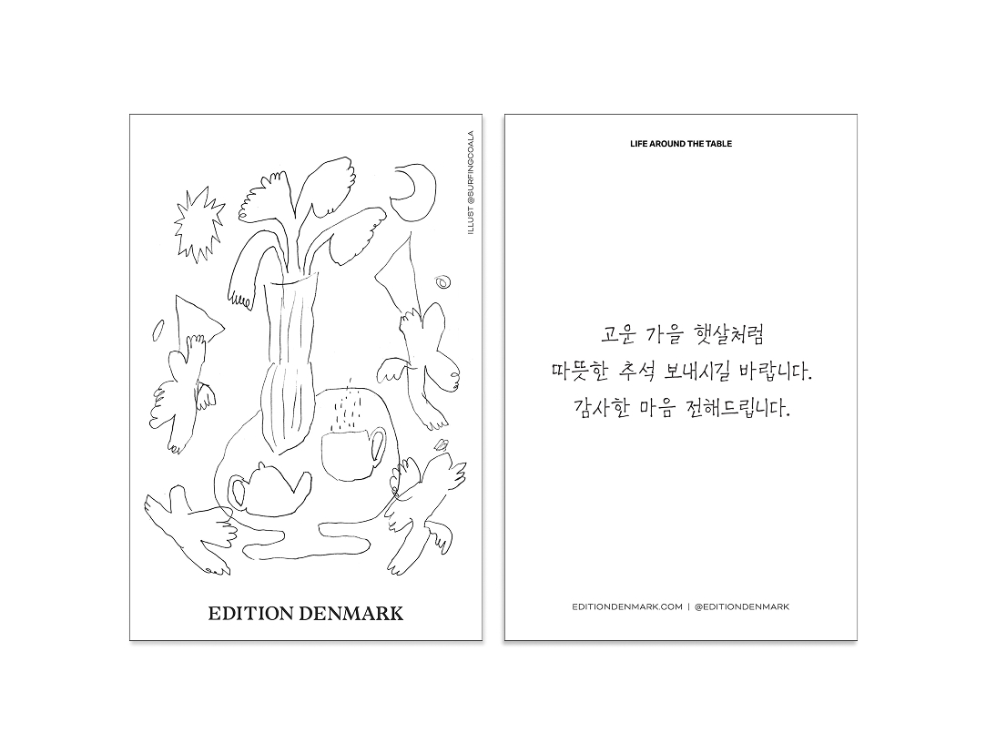 에디션덴마크의 메시지카드 작성 서비스입니다. 만나서 선물을 전달하기 어렵다면 나의 마음을 담은 메시지카드를 함께 보내보세요. 카드의 내용을 적어주시면 에디션덴마크가 구매하신 제품과 함께 보내드립니다.