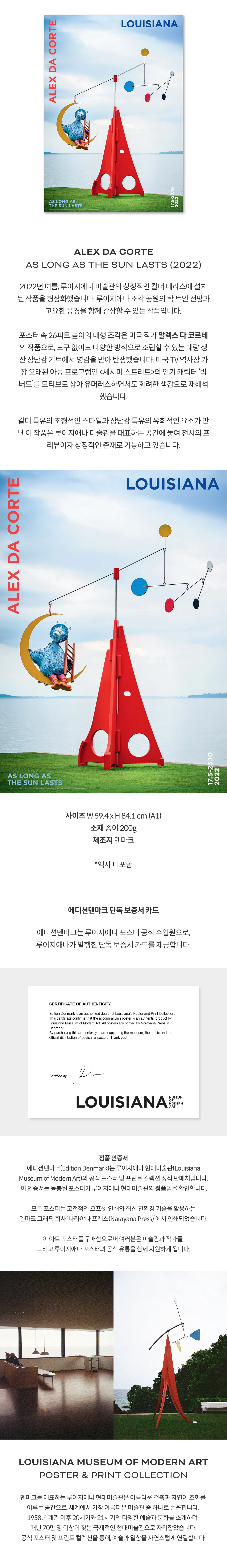* 에디션덴마크는 루이지애나 포스터 공식 수입원으로, 단독 보증서 카드를 제공합니다.