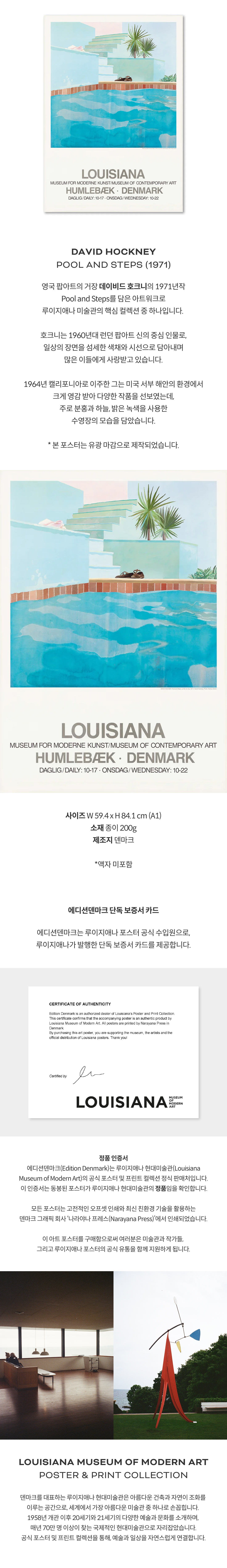영국 팝아트의 거장 데이비드 호크니의 1971년작 Pool and Steps를 담은 아트워크로 루이지애나 미술관의 핵심 컬렉션 중 하나입니다.