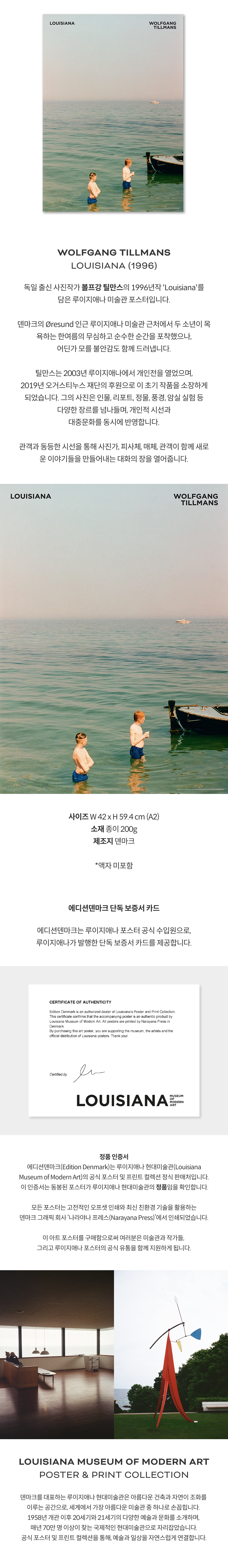 독일 출신 사진작가 볼프강 틸만스의 1996년작 'Louisiana'를 담은 루이지애나 미술관 포스터입니다.