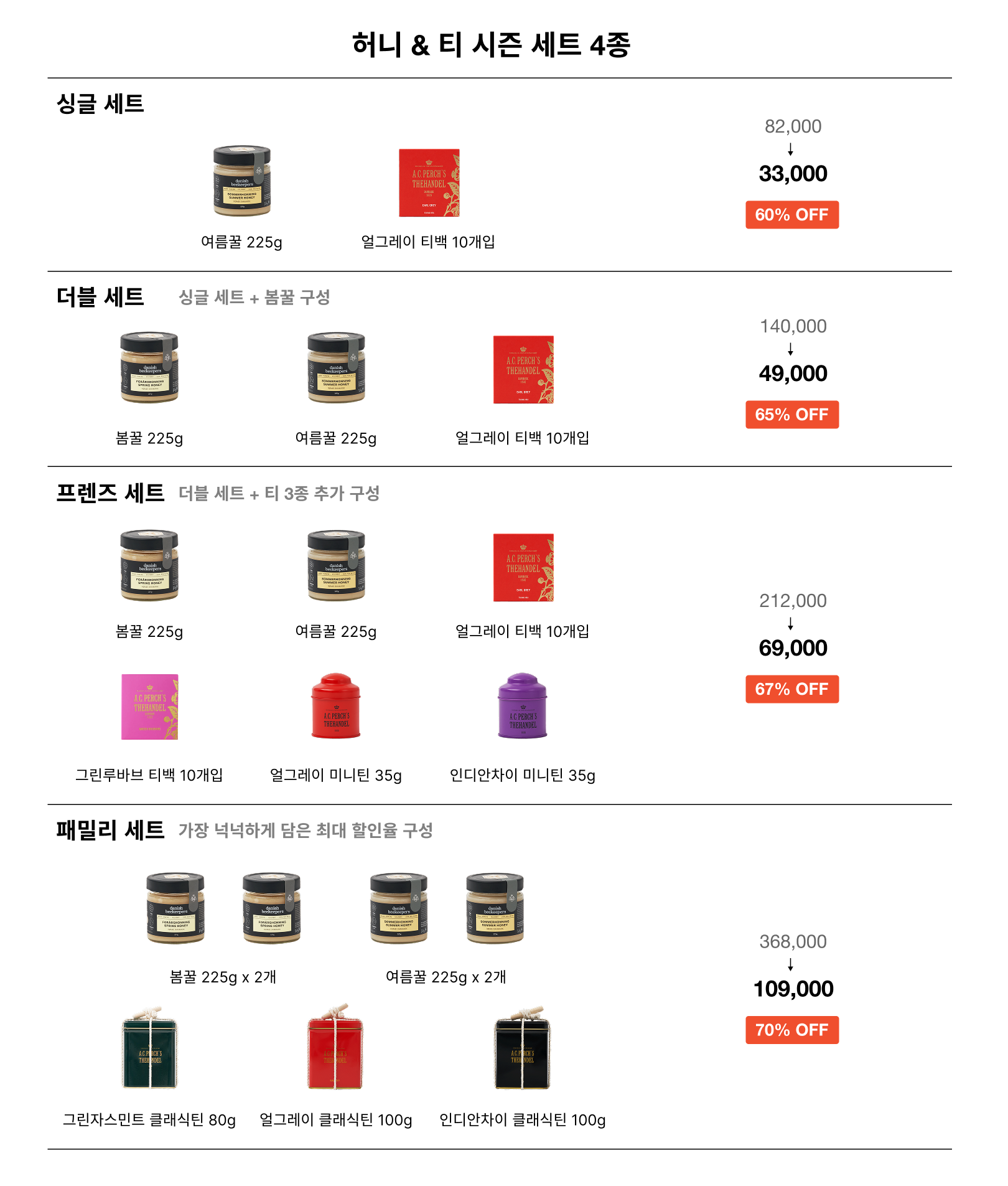 덴마크의 봄, 여름 계절이 담긴 꿀의 풍미와 티를 함께 즐길 수 있는 에센셜 세트입니다.